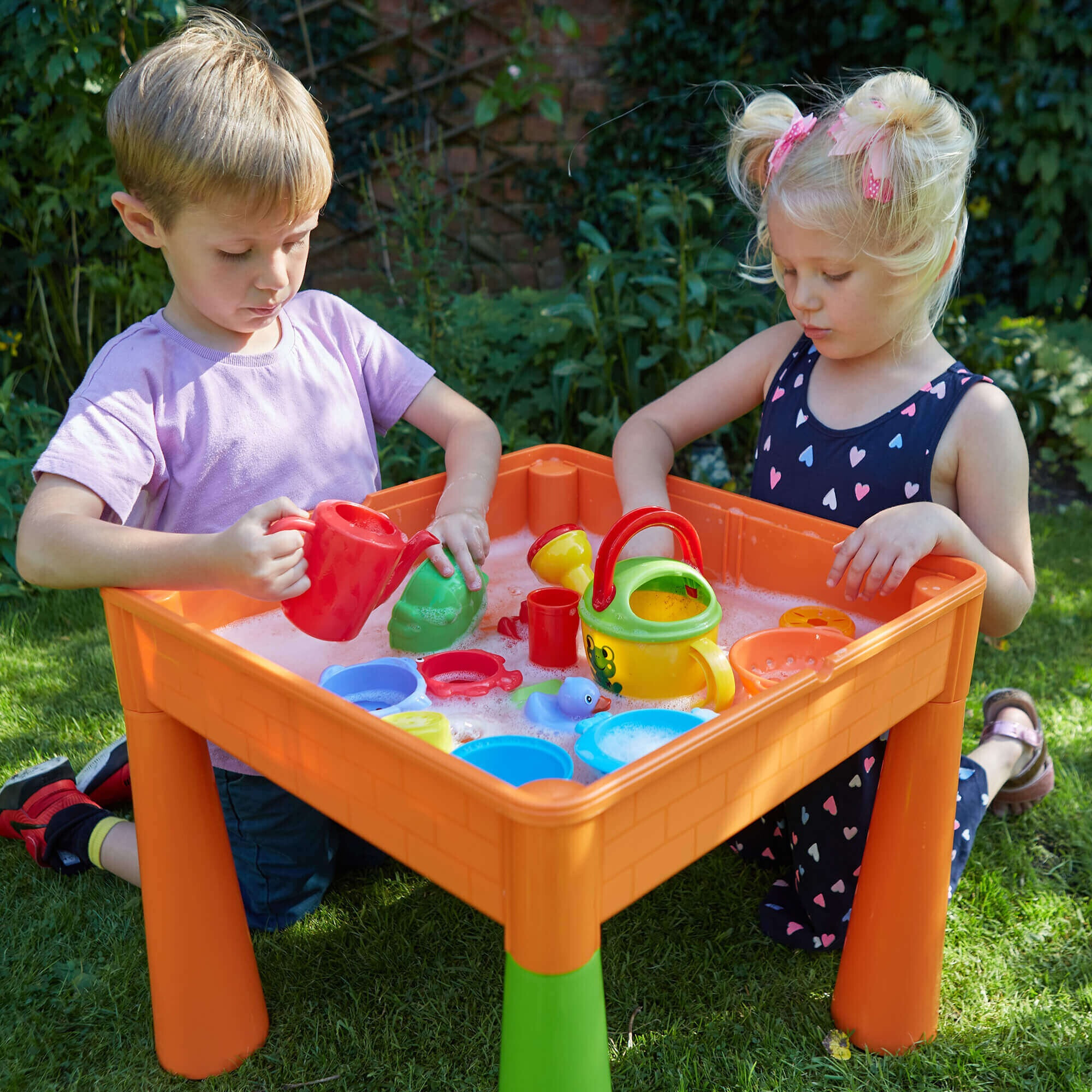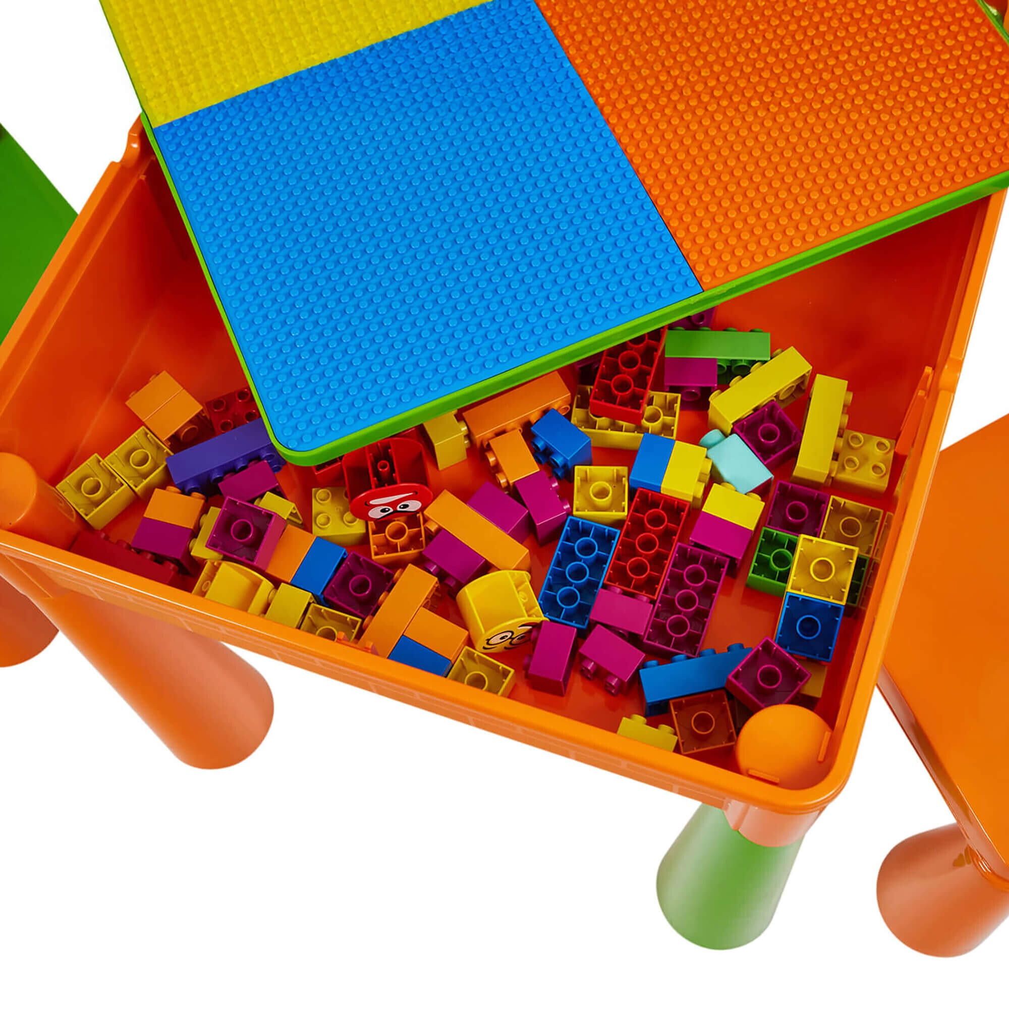 5-in-1 Multifunctionele Activiteitentafel met 2 Stoelen – Oranje/Groen