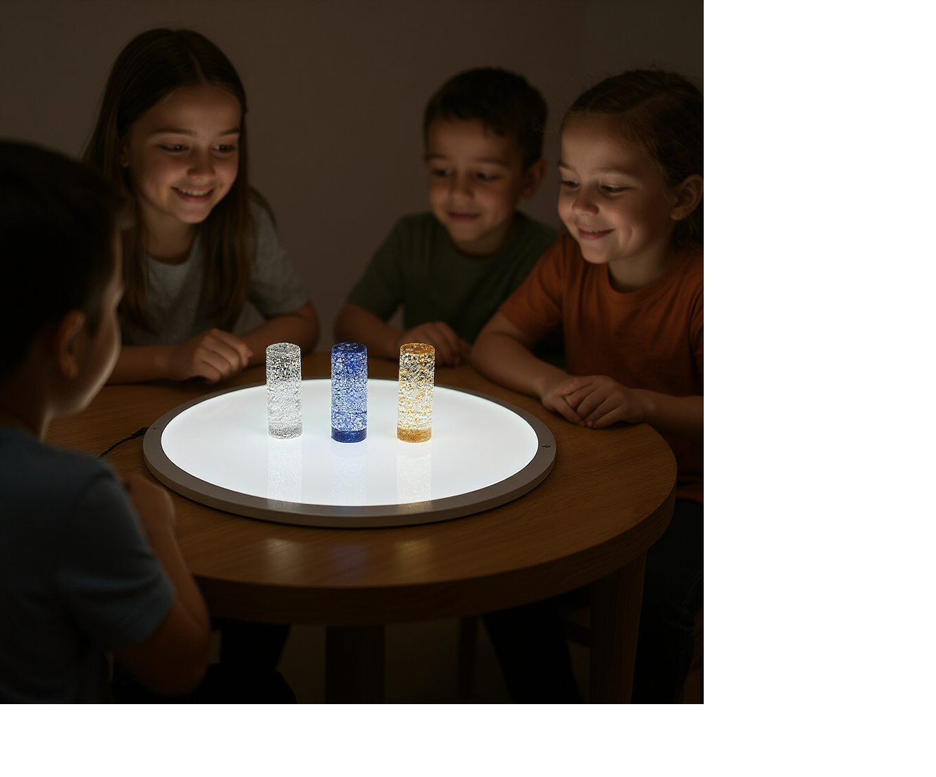 Wanneer de flessen worden omgedraaid of geschud, ontstaat een wervelende glitterstorm die langzaam tot rust komt. Dit fascinerende effect helpt kinderen om te ontspannen, te focussen en bewust te observeren. Ideaal voor rustige momenten, prikkelarme hoeken en sensorische pauzes.