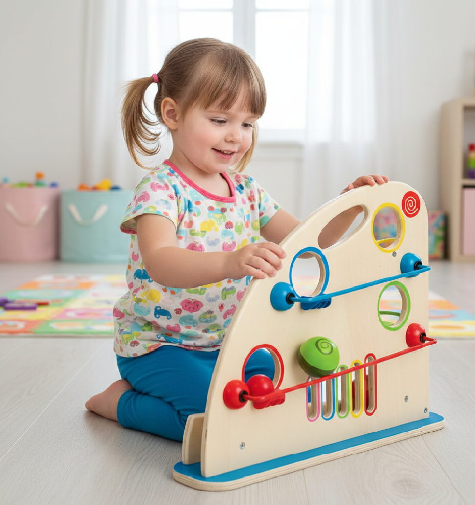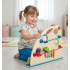 Deze houten ballenbaan is een klassiek educatief speelgoed dat jonge kinderen uitnodigt om te experimenteren met beweging, snelheid en zwaartekracht. Door de bal bovenaan te plaatsen en deze naar beneden te zien rollen via verschillende banen, tunnels en bochten, ontdekken kinderen spelenderwijs fundamentele STEM-principes.
