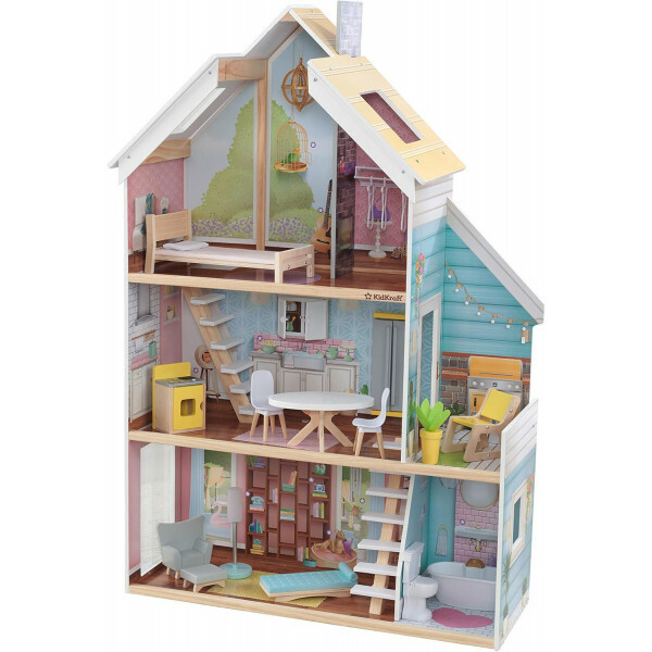 Het KidKraft Zoey Poppenhuis met EZ Kraft Assembly™ is een luxe poppenhuis van meer dan 1,20 meter hoog, speciaal ontworpen voor kinderen die houden van fantasierijk spelen. Met drie speelniveaus en 18 accessoires biedt het huis talloze mogelijkheden om verhalen te bedenken en te beleven.