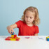 Met de 27 meerkleurige houten blokken bouwen kinderen voorbeelden na uit het bijgeleverde boekje. De opdrachten lopen geleidelijk op in moeilijkheid en begeleiden het kind van 2D-voorbeelden naar 3D-constructies, waardoor inzicht in vormen, structuren en ruimtelijke relaties wordt versterkt.