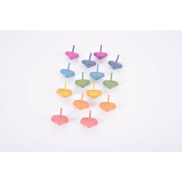 Regenboog Houten Tollen – 14-delige Set – Duurzaam Educatief Speelgoed